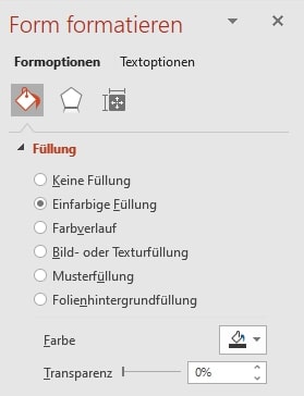 - Wähle im Aufgabenbereich Hintergrund formatieren unter Füllung → Einfarbige Füllung aus.