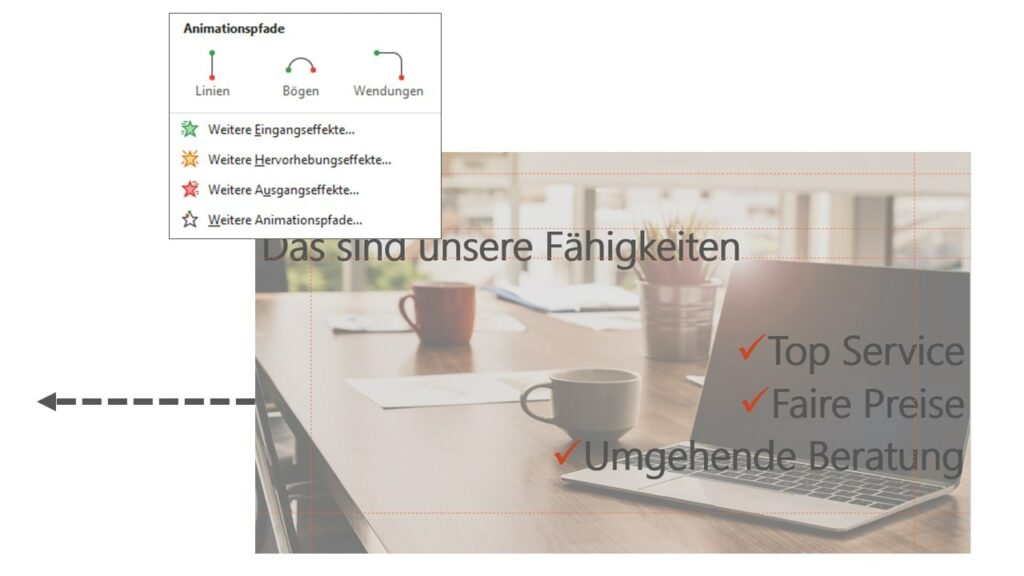 - Anschließend siehst du einen grünen Pfeil als Start– und einen roten Pfeil als Endpunkt der Animation auf deiner Folie.