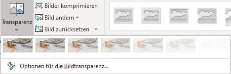 - Klicke das eingefügte Bild an und wechsle zum Register Bildformat/Anpassen → Transparenz → Optionen für die Bildtransparenz.