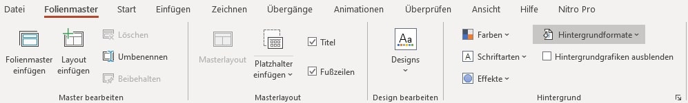 - Klicke über die Registerkarte Folienmaster/Hintergrund → Hintergrundformate → auf Hintergrund formatieren.