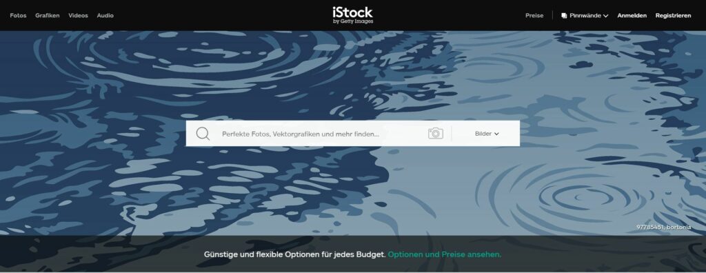 - IStock ist kein kostenloser Anbieter und bietet qualitativ hochwertiges Bildmaterial in einem günstigen Preissegment von einem bis drei Dollar an.