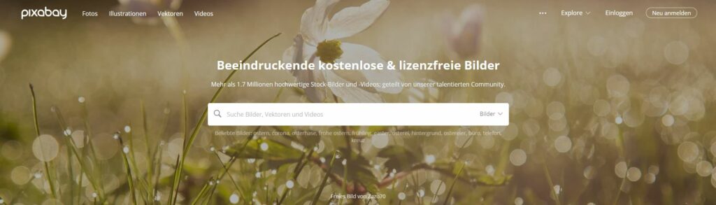Die bekannteste Datenbank für kostenloses Bildmaterial umfasst derzeit mehr als eine Million kostenfreie Bilder in vielen verschiedenen Kategorien. Die Bilder sind Public Domain. Das bedeutet, du darfst sie verwenden, bearbeiten und veröffentlichen, ohne den Urheber zu nennen.