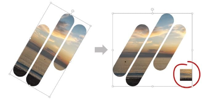- Da das kleine Rechteck zuerst markiert wurde, wird die korrekte Bildrichtung für die neue Gesamtform übernommen.