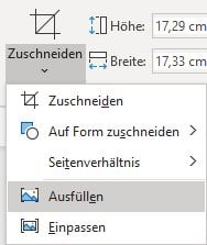 - Wähle über die Registerkarte Bildtools → Format → Zuschneiden → Ausfüllen.