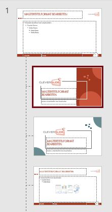 - Öffne über Ansicht → Folienmaster die Masteransicht. Links oben siehst du den Folienmaster und darunter die einzelnen Folienlayouts.