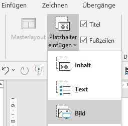 - Wähle über Registerkarte Folienmaster/Masterlayout den Befehl Platzhalter einfügen → Bild.