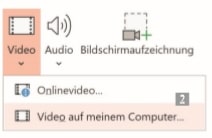 - Nutze die Befehlsfolge Einfügen → Video → Video auf meinem Computer.