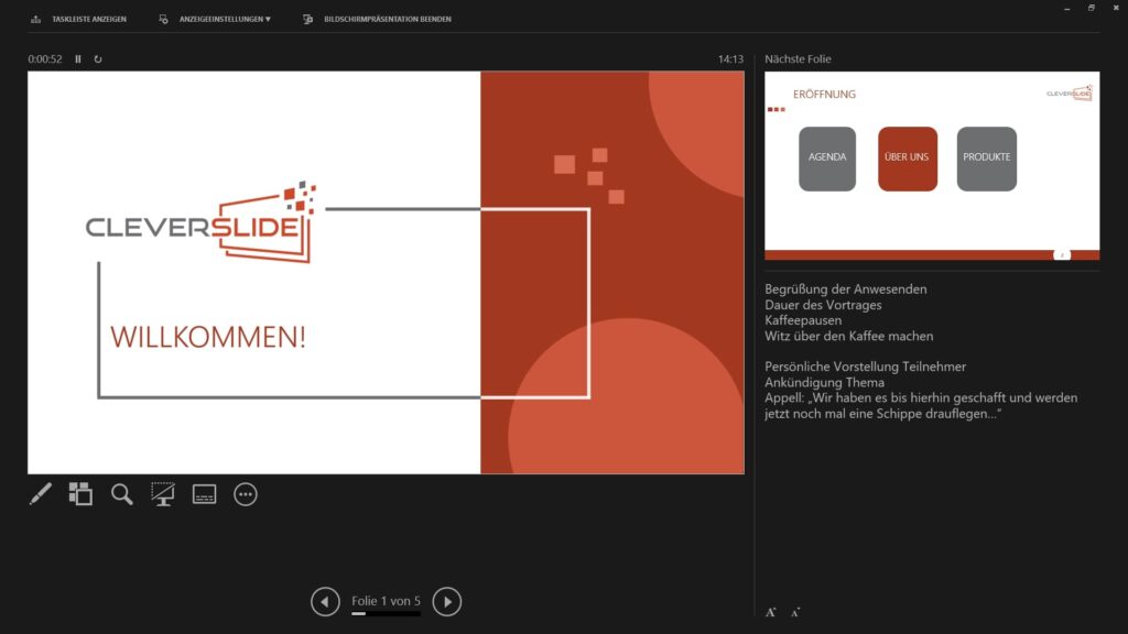 Short-Cuts, um deine Präsentationen zu starten, zu unterbrechen und zu beenden