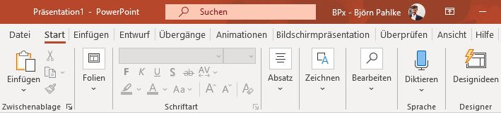 In den Registerkarten findest du als PowerPoint-Einsteiger Tools und Funktionen, mit denen du ausdrucksvoll deine Präsentation erstellen und vorführen kannst.