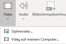 - Klicke in der Registerkarte auf Einfügen/Medien → Video.