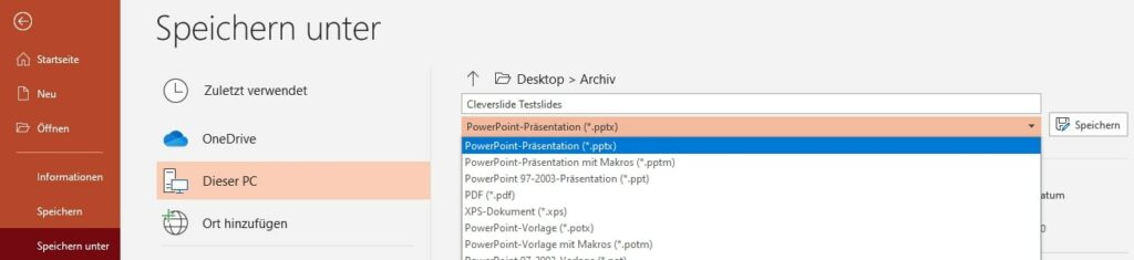 So speicherst du deine Präsentationsdatei in einem anderen Dateiformat
