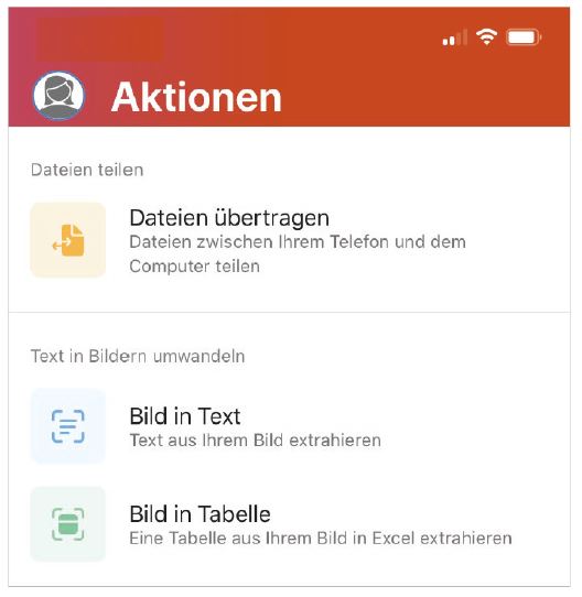 - Mit Bild in Text kannst du ein gedrucktes Dokument fotografieren. Der Text darin kann automatisch erkannt und in bearbeitbaren Text umgewandelt werden, den du dann in eine Präsentation oder ein Word Dokument einfügst.